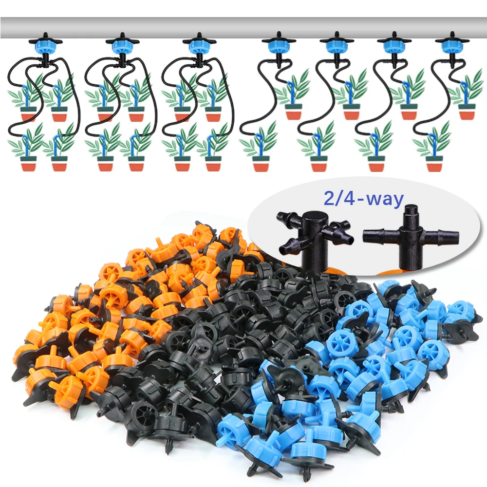 – At the top of it are 2 or 4 way joints, which are used to connect the dripper arrows so that you can better water your plants, for example, 2 way 2 liter dripper heads, he can evenly distribute 1L to each dripper arrow